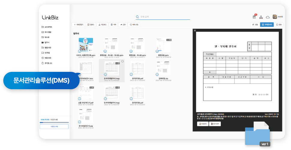 폴더 단위로 문서를 변경하거나, 잠금, Check-In/Check-Out 버전 관리 할 수 있습니다.