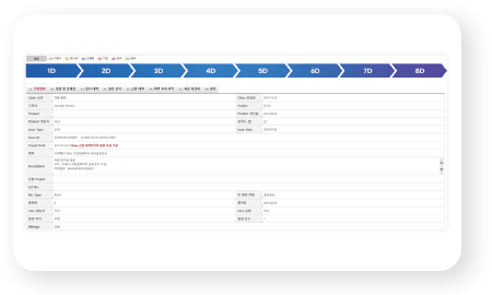- 고객사로 부터 시행되는 Audit, Calim 관리가 가능하며, 필요한 경우 협력(공급사) Audit 관리도 가능합니다. B2B(Business to Business)가 아닌 B2C(Business to Customer) 대상의 Calim 관리는 별도 문의 부탁 드립니다. - 품질 시스템에서 사용되는 8D 형식으로 업무 프로세스 진행이 가능합니다.