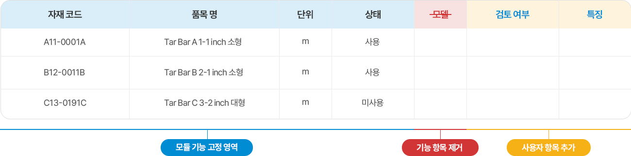 - 선택 만으로 양식 및 이미지 그대로를 시스템 등록 화면으로 만들 수 있습니다. - Toolkit에 새로운 기능을 추가하면, Toolkit으로 만든 모든 업무에 적용되어 편리하게 관리가 가능합니다. - 조회 조건 및 디자인 구성을 사용자가 편리하게 수정 가능합니다. - 모듈 기능의 기본 고정 영역을 제외하고 나머지 항목은 추가 및 삭제가 가능합니다.데이터 연동 및 추출/정제 기능