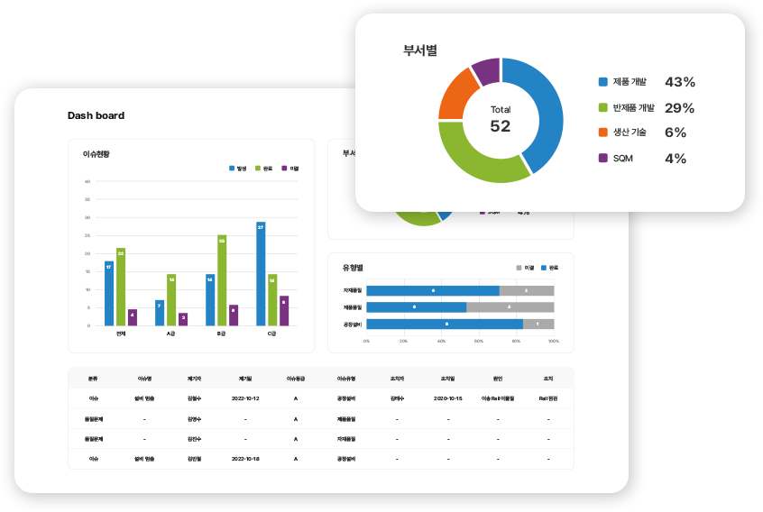 장납기, 입고/출고 현황, 불량/반품 현황 등
